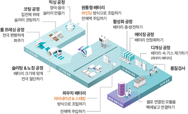 | 02. 조립 공정 | 노칭/라미/스태킹 | 물류자동화설비/AGV |